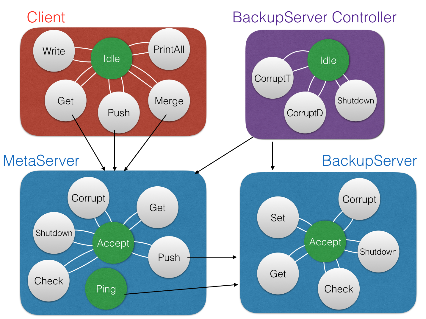 Approach - Implementing majority (quorum) protocol, communication over data stream using sockets, random gossip protocol.